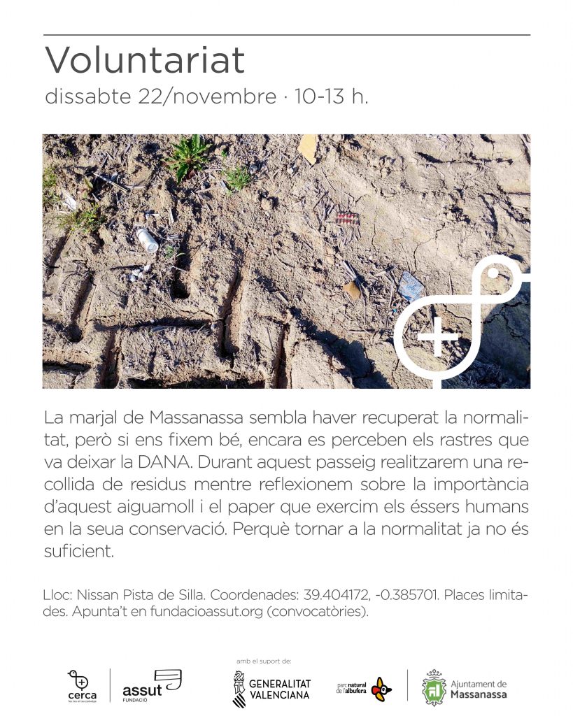 La marjal de Massanassa sembla haver recuperat la normalitat, però si ens fixem bé, encara es perceben els rastres que va deixar la DANA. Durant aquest passeig realitzarem una recollida de residus mentre reflexionem sobre la importància d’aquest aiguamoll i el paper que exercim els éssers humans en la seua conservació. Perquè tornar a la normalitat ja no és suficient.